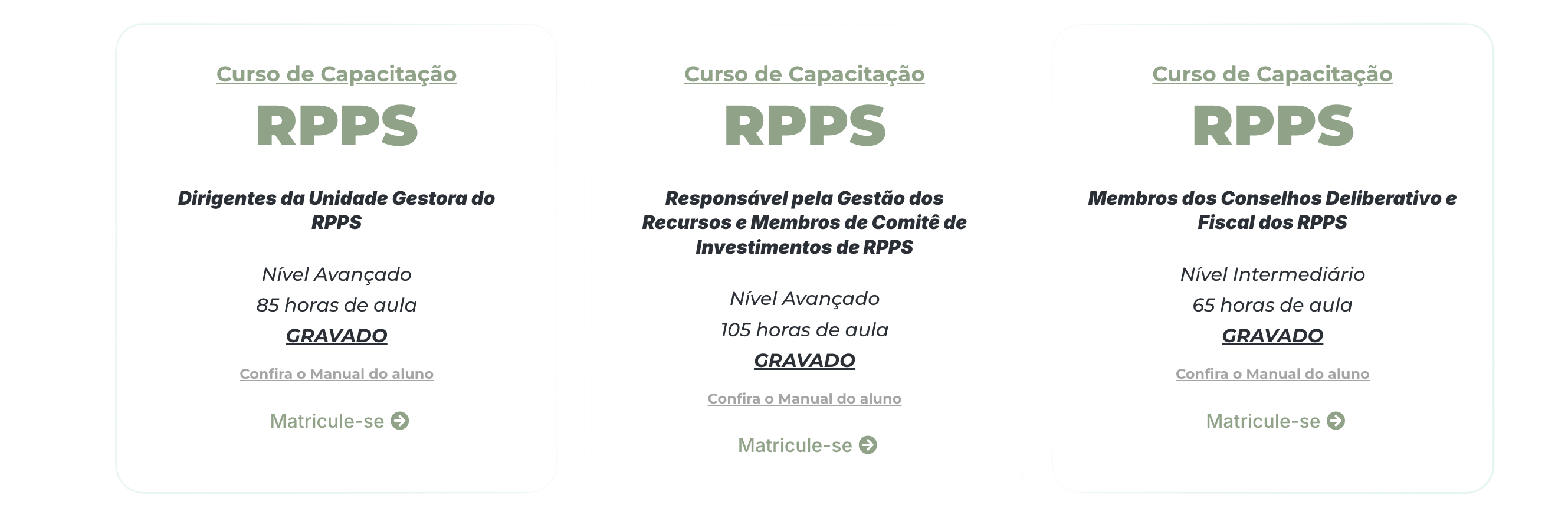 Nossos professores tem certificação atualizada baseada no manual de certificação da Secretaria da Previdência.